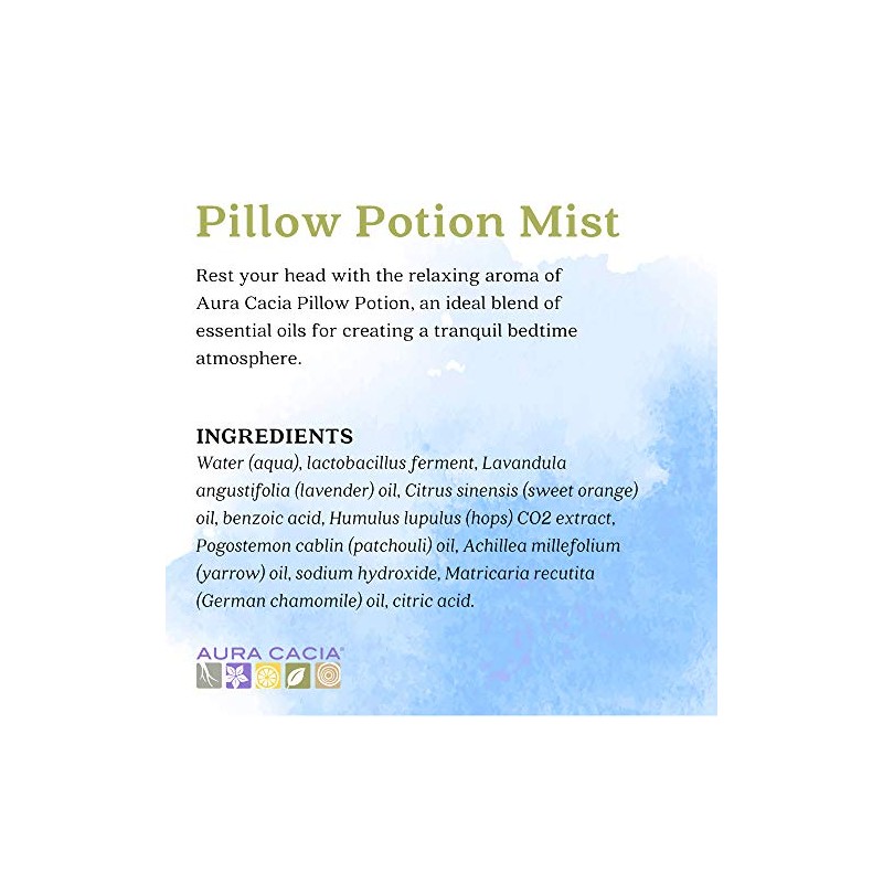 - PILLOW POTION MIST - Rest your head with the relaxing aroma of Aura Cacia Pillow Potion, an ideal blend of essential oils for creating a tranquil bedtime atmosphere.