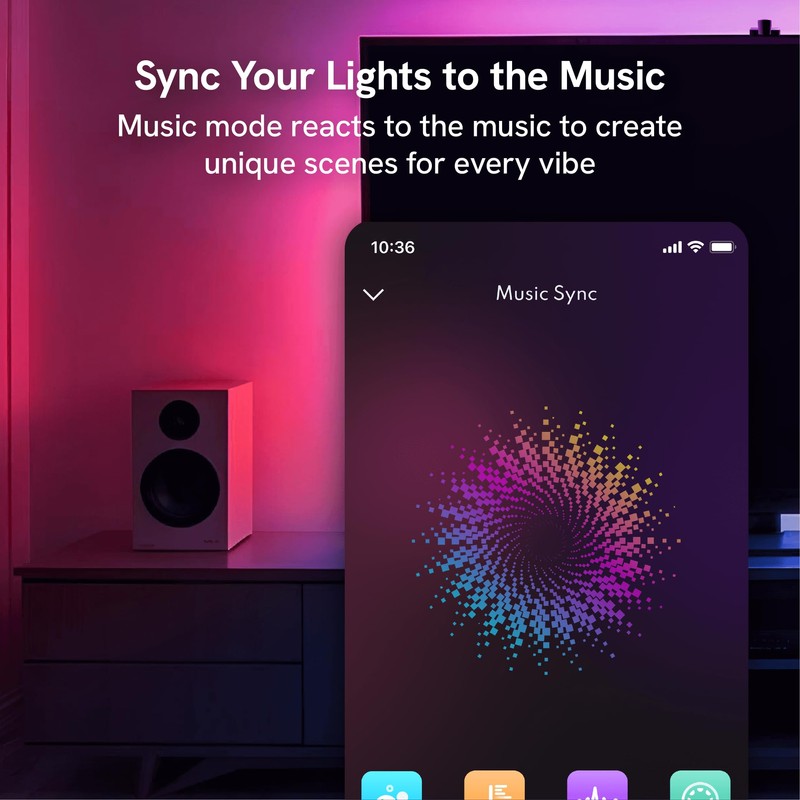 - Music Visualizer: Turn your listening sessions into a sensory experience with lights that pulse and change color to the beat of your music.