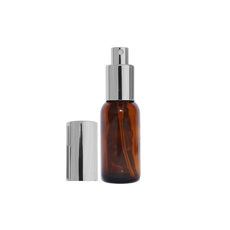 Aura Variety 12 Bottles 1 OZ 30 ML Boston Round Amber Empty REFILLABLE Glass Bottle with FINE Mist Silver Sprayer (Perfume Fragrance Cologne Essential Oil Atomizer)
