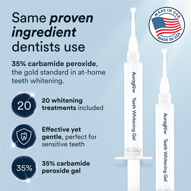Auraglow Teeth Whitening Kit, LED Accelerator Light, 35% Carbamide Peroxide Teeth Whitening Gel, 20+ Whitening Treatments, Whitens up to 10 Shades in 7 Days