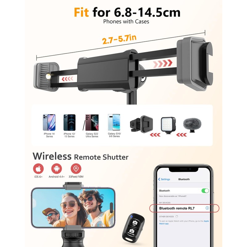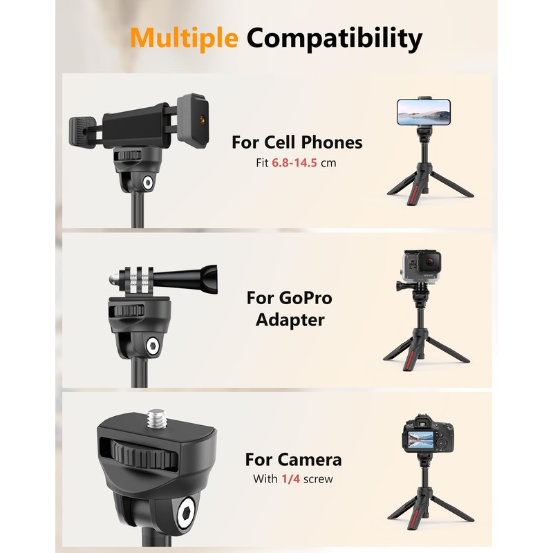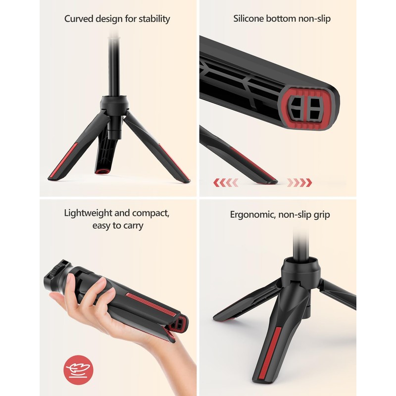 Aureday 38 cm Mini Tripod for Action Camera, Portable Travel Vlog Tripod Stand with 4-Piece Extension Rod, Mini Selfie Stick Tripod for Max Action Camera