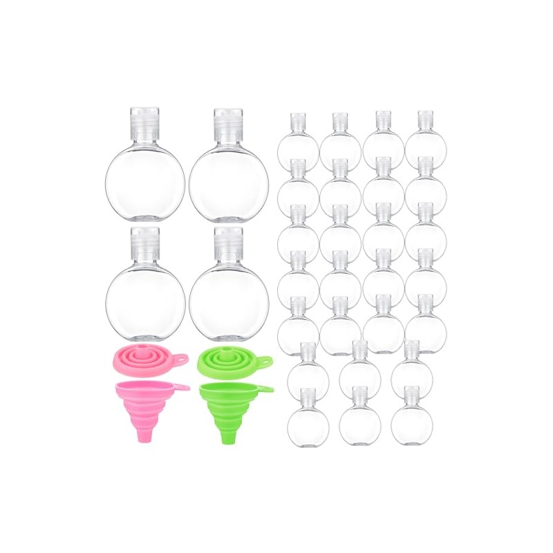Aurelema 30 Pcs 1 oz Travel Bottles Mini Clear Empty Hand Sanitizer Bottles with Foldable Funnels Portable Reusable Containers for Business Trip Outdoor Camping Shampoo Conditioner Body Wash Liquid
