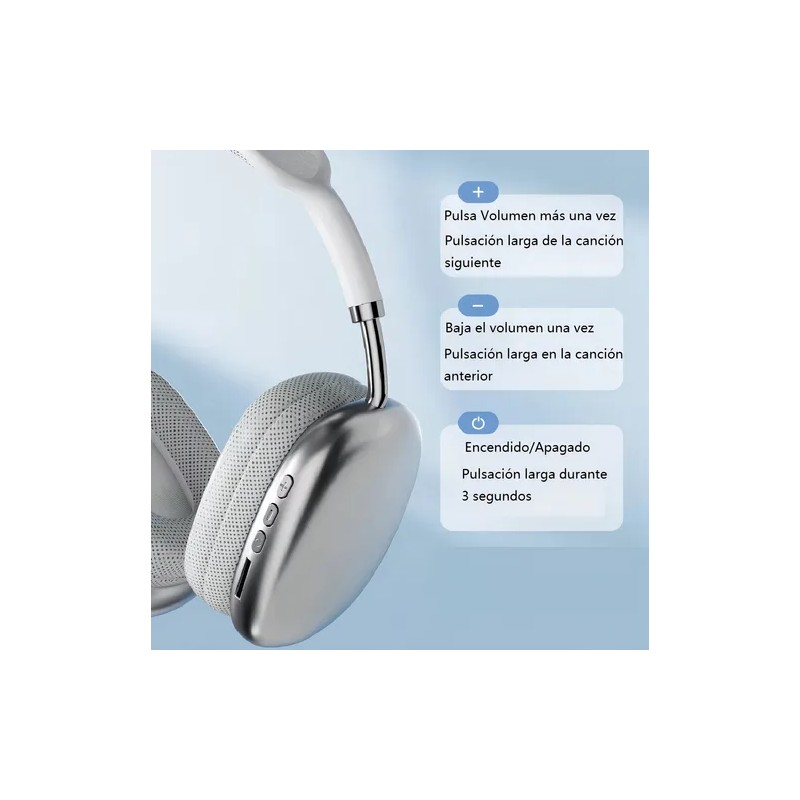 Auriculares Inalámbricos Diadema Con Micrófono 400mah Plateado Diadema Vulata P9 Pro Max Algodón Acolchado Orejeras Transpirables Rotación Libre