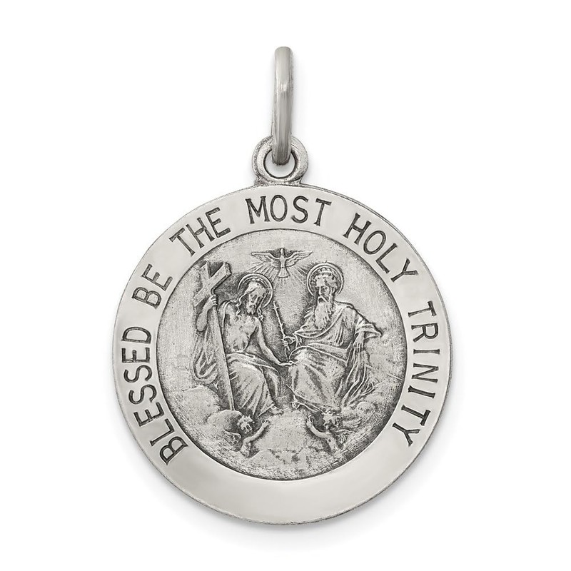 - PRODUCT SPECIFICATIONS : 925 Sterling Silver Antiqued Holy Trinity Medal Pendant (L- 1.03 Inch, W- 0.71 Inch), Metal Purity:925|Finish:Antiqued|Length of Item:26mm|Charm/Element Length:20.07mm|Charm/Element Width:17.31mm|Feature:Solid|Material: Sterling Silver|Width of Item:18mm|Jewelry Type:Pendants & Charms|Sold By Unit:Each|Pendant/Charm Type:Themed|Material Color:White