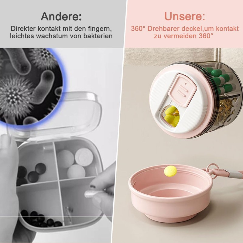 Bewahren Sie Ihre Medikamente übersichtlich und griffbereit auf – mit unserem hochwertigen tragbaren Pillenspender, der auf Komfort, Langlebigkeit und Benutzerfreundlichkeit ausgelegt ist. Ideal für täglich einzunehmende Tabletten, Vitamine, Nahrungsergänzungsmittel oder kleine wichtige Dinge.