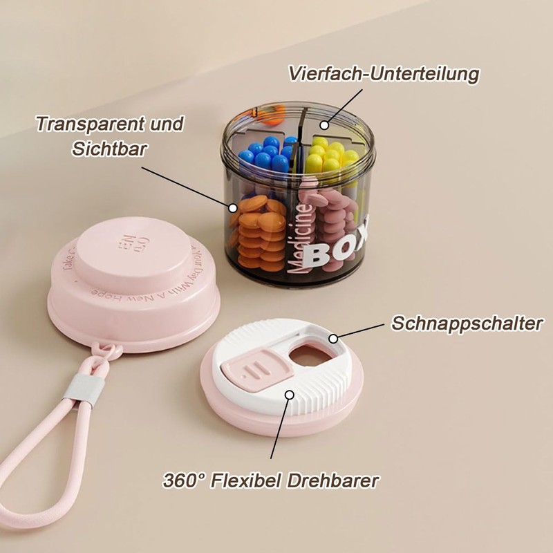 Auriselle Medikamentenbox Kleine Tablettenbox mit 4 Fächern Rund und Tragbar ...