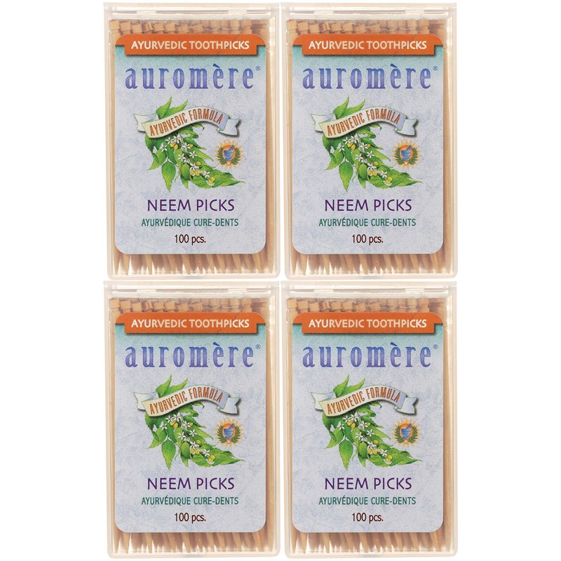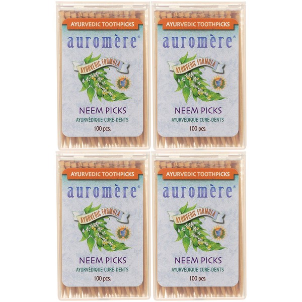 Auromere Ayurvedic Neem Toothpicks - Vegan, Natural, Non GMO, Made from Birchwood (100 Count), 4 Pack by Auromere Store