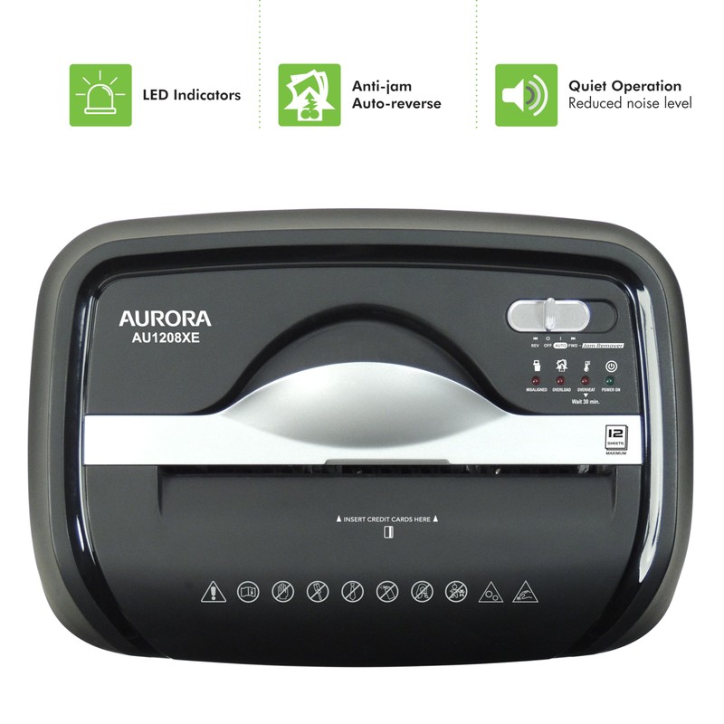 Aurora AU1208XE Anti-Jam 12-Sheet Crosscut Paper/Credit Card Shredder with 4.8 Gallon Wastebasket