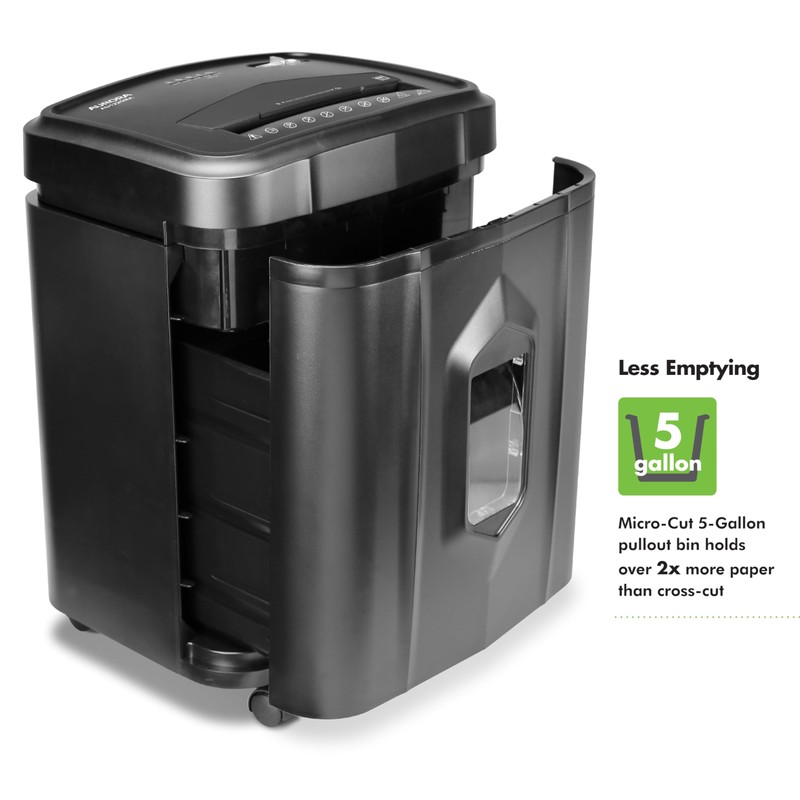 • High-Security Micro-Cut with 12 sheet capacities; destroys CDs, DVDs, credit cards, and small paper clips