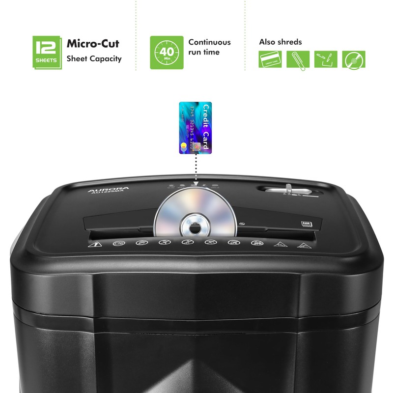Aurora AU1225MA High-Security 12-Sheet Micro-Cut Paper and CD/Credit Card Shredder/ 5-Gallon Pullout Basket/40 Minutes Run Time