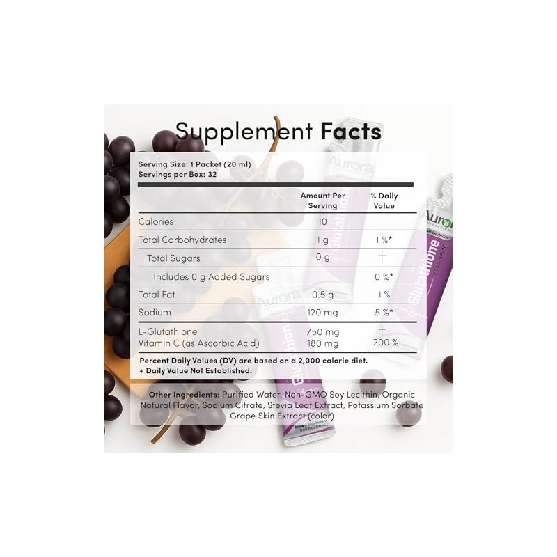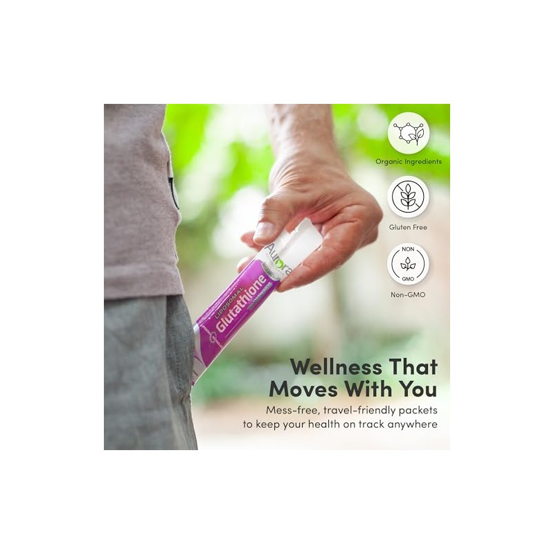 • TRY OUR LIPOSOMAL FORMULA! ON THE GO! Now you can take your Aurora Nutrascience Glutathione on the go. No refrigeration is needed with these convenient travel packs. AURORA NUTRASCIENCE MEGA