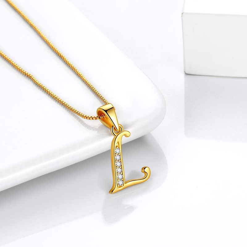 Aurora Tears 26 Letters Necklace/Stud Earrings, 925 Sterling Silver, Initial A-Z Alphabet Pendant/Earring with Cubic Zirconia, Jewellery Gifts for Women, Necklace Gold, l