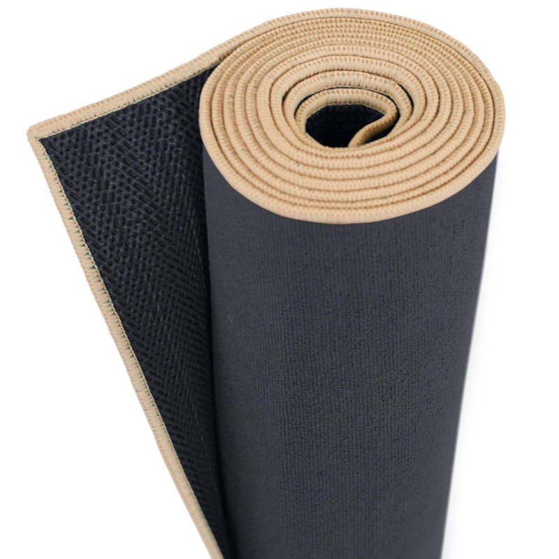 - This unique super deluxe non-slip yoga mat-towel uses our patented Synergy Technology that bonds our lightweight, PER yoga mesh backing, with our lush, ultra-absorbent non-slip microfiber towel. Experience no more slipping, towel bunching or shifting around on the floor. You'll have the best of both worlds all wrapped up into one product.