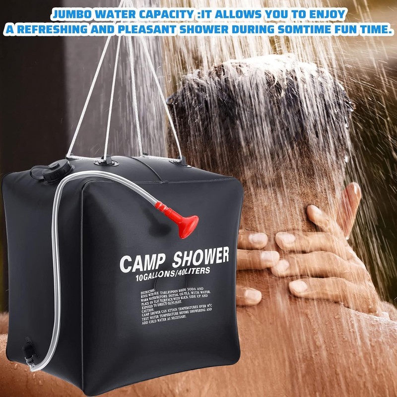 2. The large bag can easily hold 10 gallons (about 40 liters) of water, allowing you to shower anywhere.