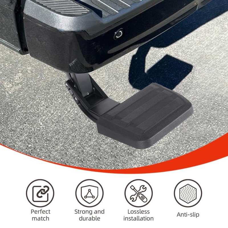 - Perfect Tacoma Accessories:The bumper and chassis of the truck is very high off the ground, getting in and out of the bed will be very troublesome and dangerous, so the retractable bumper tailgate pedal is a perfect choice.It can be retracted back into the stored position with a gentle push