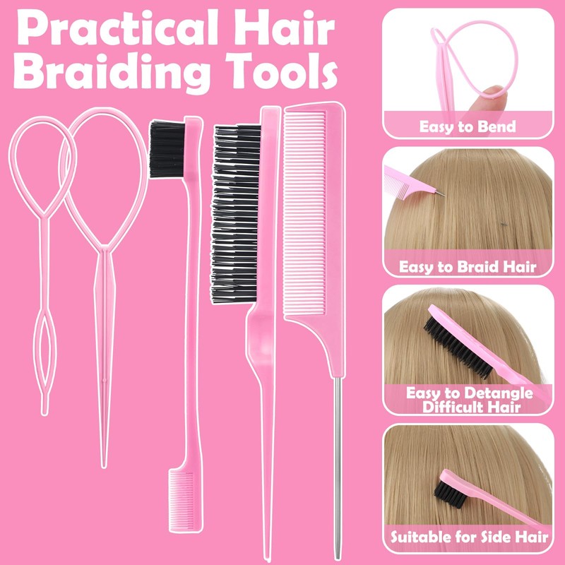 - 【Hair Styling Tools】2 Hair tail tools of different sizes can reverse various hairstyles. The teasing hair brush, double sided edge brush and rat tail comb are perfect for styling, parting, backcombing and combing hair. Easily create complex braids, buns and many other hairstyles