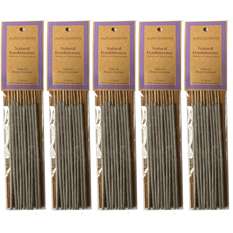 Auroshikha Frankincense Natural Resin on Stick - 5 Packs, 10 Sticks per Pack