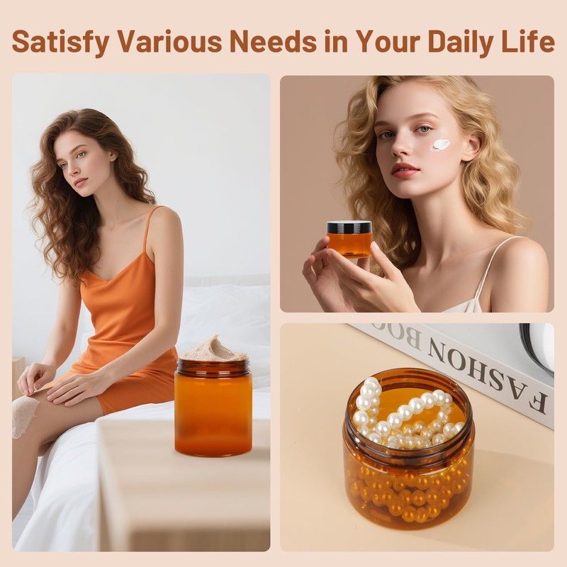 - PORTABLE SIZE & EASY TO CARRY: These 8oz amber plastic jars with lids are ideal for storing batches of face cream, easy to carry and sliding effortlessly into bags, travel kits—perfect for daily use or on-the-go skincare storage