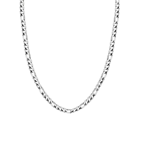 AURSTORE Men's Figaro Chain Necklace Silver-Plated Stainless Steel Length 50 cm, 55 cm and 60 cm, Stainless Steel, No Gemstone