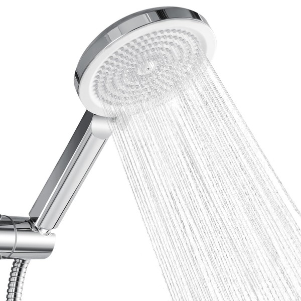 Aurulam Shower Head, Shower Head with 4 Jet Types, Large Rain Shower, Shower Head with G1/2 Connection, Hand Shower, Water-Saving, Made of ABS, Anti-Scale, Easy to Clean, Chrome/White