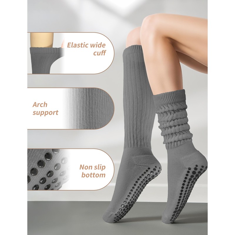 AURUZA Yoga Grip Pilates Socks for Women, Non Slip Slouch with Grip for Hospital Long Scrunch Slipper Ideal for Ballet Dance Home Barefoot Workout Pregnant Athletic Gripper Womens Socks