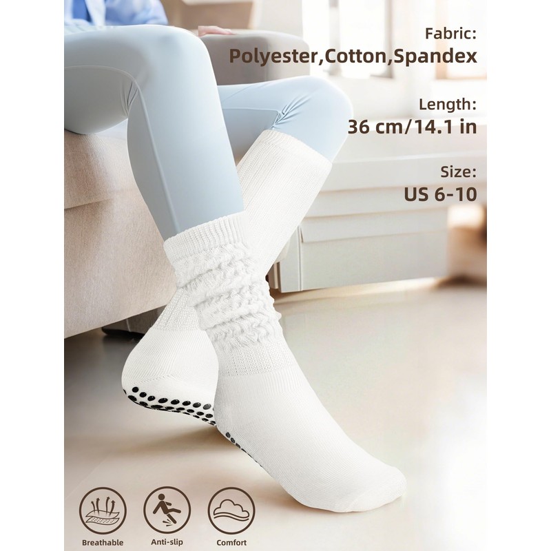 - 【FLEXIBLE LENGTH ADJUSTMENT】 These yoga socks offer a versatile way to style them. Whether you fold them down to your ankles or pull them up stylishly for a chic, bunched-up look. They pair perfectly with shorts, skirts, or boots, adding both warmth and a fashionable flair to any outfit
