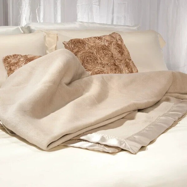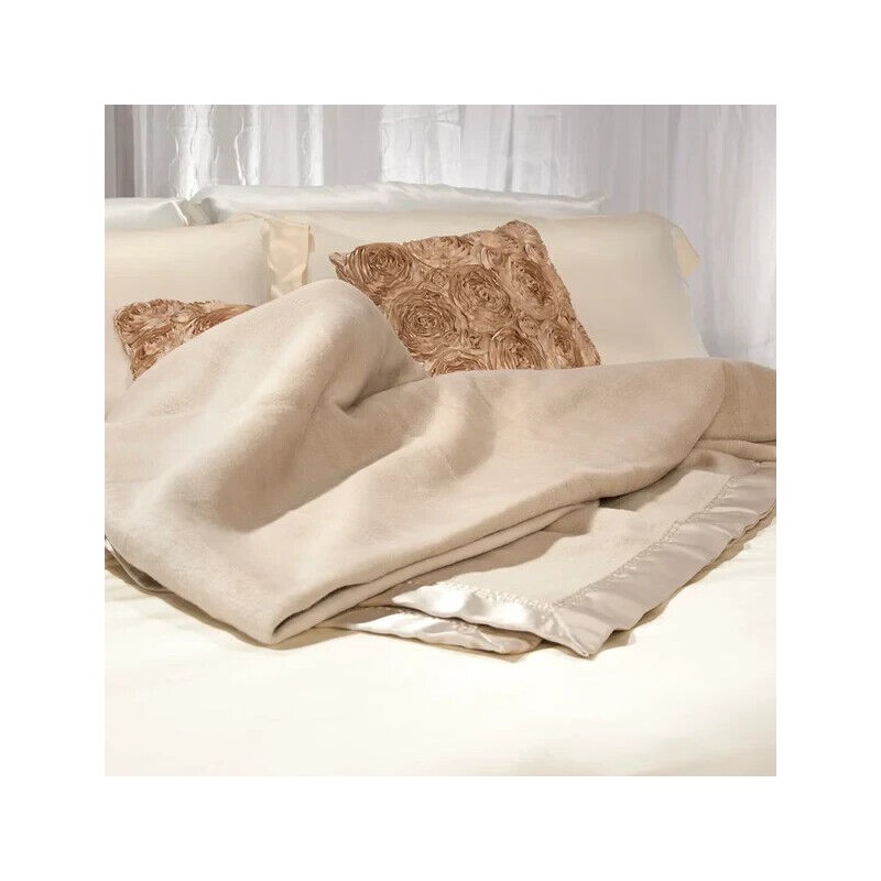 Aus Vio 100% Natural Charmeuse Silk Luxurious Blanket with Satin Trim, Ivory