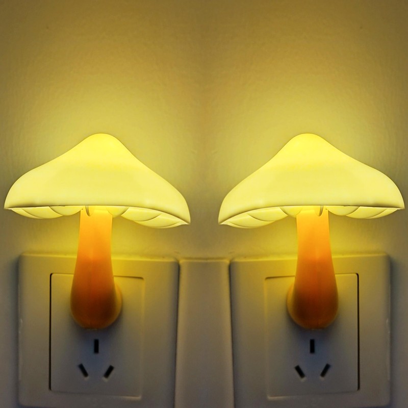 - Package includes 2 pcs of warm white mushroom-shaped night lights with dusk to dawn sensor