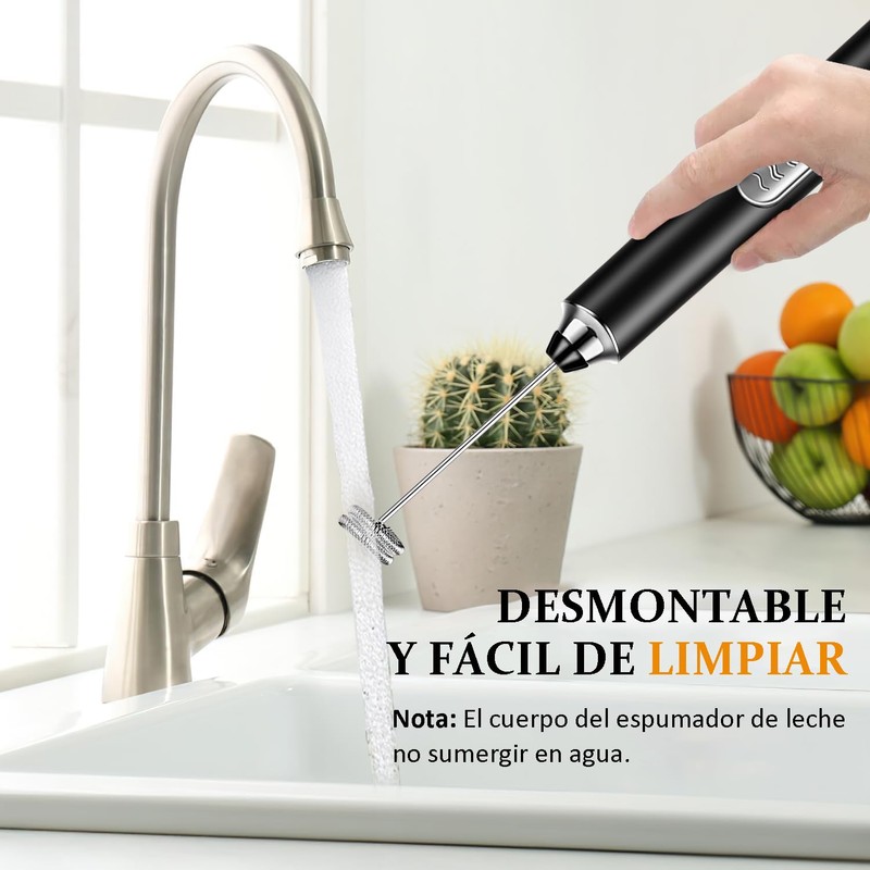 - ☕【Espumador de Leche de Alta Calidad】El mezclador desmontable está hecho de acero inoxidable de alta calidad de grado alimenticio, que es fácil y cómodo de sostener. Potente motor de bajo ruido incorporado y fuerte velocidad de rotación. El cabezal batidor extraíble es fácil de limpiar, simplemente coloque el espumador en agua caliente y presione el botón. Sólo tiene que aclararlo. Trate de evitar sumergirlo completamente en agua, esto puede causar un mal funcionamiento del motor del mango.