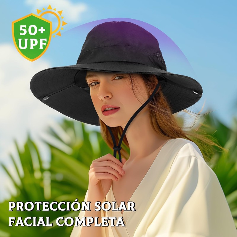 - 【Protección solar y función de parasol】Fuerte protección UV, UPF50+, sombrero de protección solar de ala ancha que proporciona protección solar para proteger el cuello, las orejas y la cara de los dañinos rayos UV. Además, este sombrero se puede transformar en un look de sombrero vaquero, ¡muy elegante!