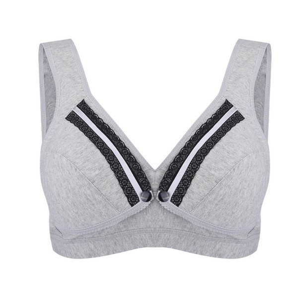 Ausla Wireless Maternity Nursing Bra, 4 Rows, Hook and Eye Closure, Front Open Button, Widened Shoulder Straps, Healthy Cotton Nursing Bras for Pregnant Women, gray