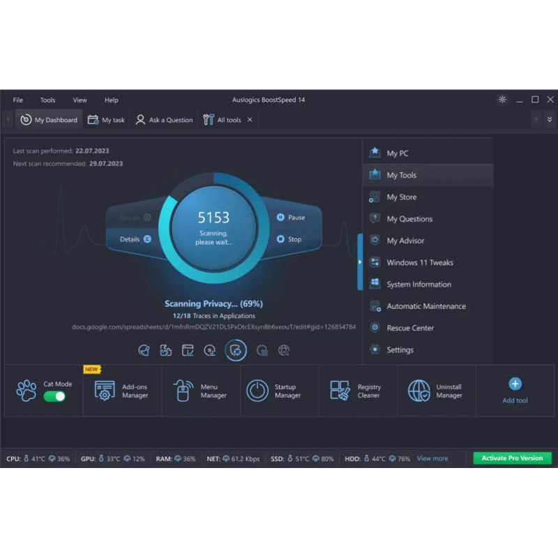 Auslogics BoostSpeed 14 Pro optimize your system, boost PC 1 year 3 PC License