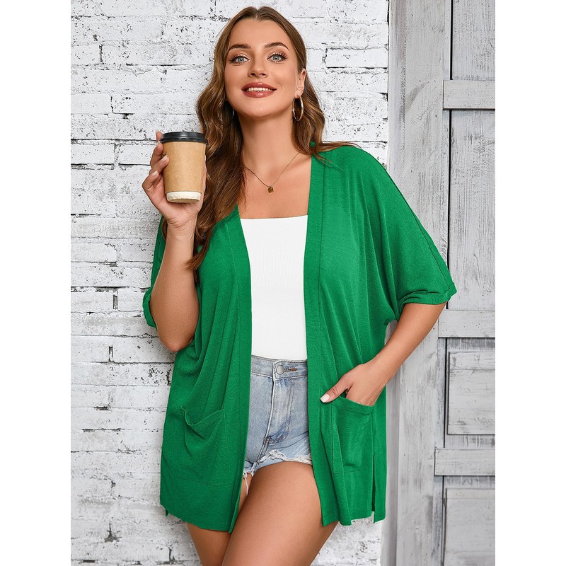 - Feature: Plus size lightweight summer cardigan features rolled short sleeves which is a loose fit to cover your arms and the split hem on both sides allows the open front cardigan to be tied in the front. The loose, well-draped style makes this kimono cardigan flowy and ariy to wear. The back length of the short sleeve cardigan is long enough to cover the butt