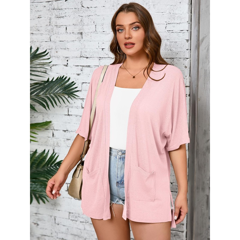 - Feature: Plus size lightweight summer cardigan features rolled short sleeves which is a loose fit to cover your arms and the split hem on both sides allows the open front cardigan to be tied in the front. The loose, well-draped style makes this kimono cardigan flowy and ariy to wear. The back length of the short sleeve cardigan is long enough to cover the butt
