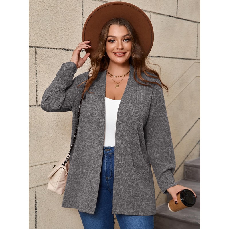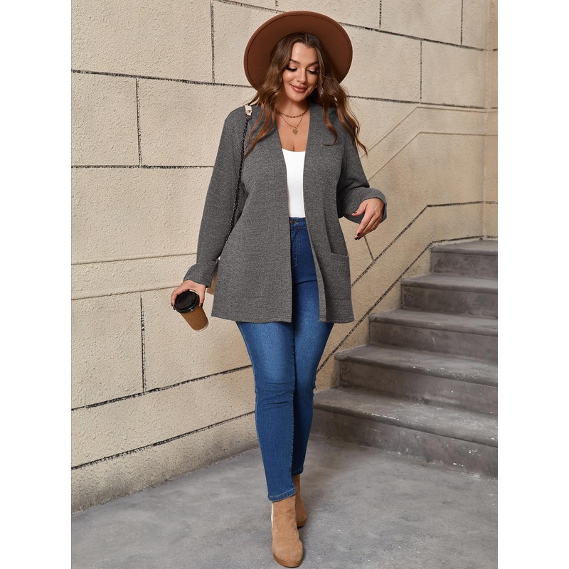 - Features: Plus size thin cardigans, loose fit, long sleeves, length over hips, two front side pockets, casual simple design but elegant, solid color, basic tops, casual coat, long open cardigan.