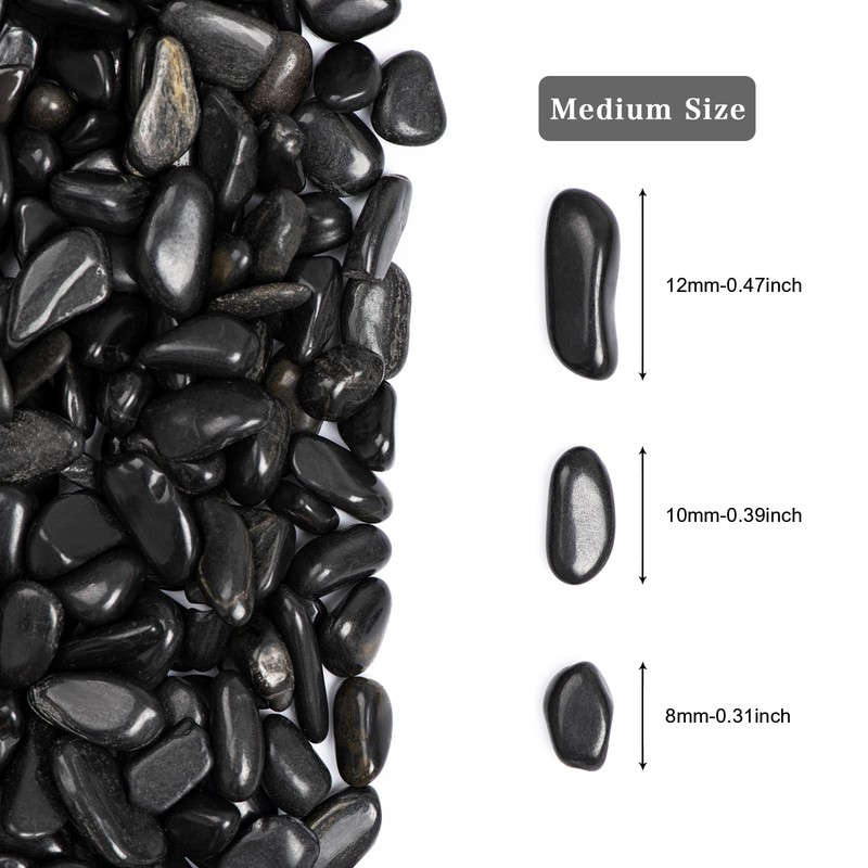 - 【Color and Size】Ausluru river rocks medium size range in length approx from 0.3" to 0.5". They are natural and as a result some may be broken or out of shape, oval or round, thick or thin. The color of this river rock is natural so it may include a variety of different shades of black. Weight: 11 pounds.