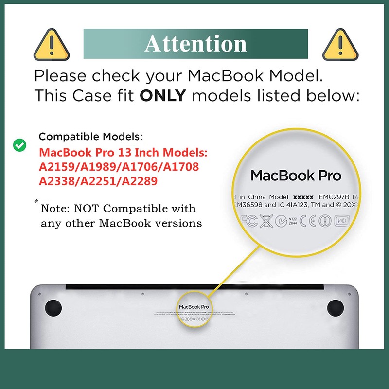 • 【Compatible with】Ausmix case only compatible with macbook pro 13 inch case 2022/2021/2020/2019/2018/2017/2016 release new macbook pro 13 Inch with touch bar and touch ID model: A2519/A1989/A1706/A1708/A2251/A2289/A2338 M1 M2. To confirm that the product you purchased is consistent, refer to the model parameters (Model: Axxxx) at the bottom of the computer.