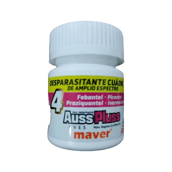 Auss Pluss Ave está formulado con febantel, pirantel, prazicuantel e invermectina para el tratamiento y control de nematodos y cestodos principalmente heterakis gallinae y h. gallinarum, raillietina spp, ascaridia galli, syngamus trachea y capillaria.