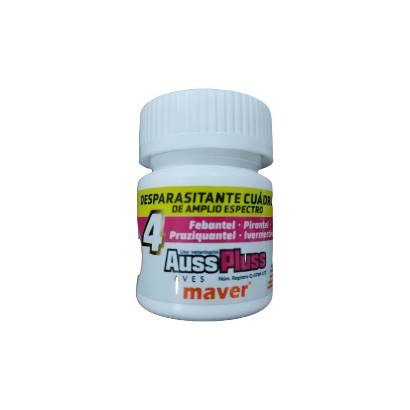 Auss Pluss Ave es un endoparasiticida de amplio espectro que funciona contra estadios maduros e inmaduros de los principales parásitos en aves.