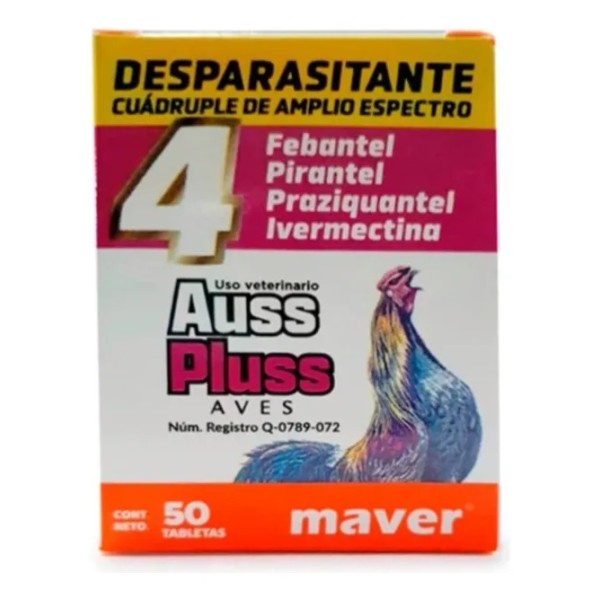 Auss Pluss Desparasitante Amplio Espectro Gallos 50 Tabletas