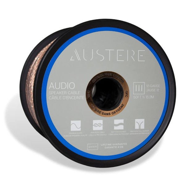 AUSTERE III Series Speaker Cable 50ft Oxygen Free Copper, Soft-Touch High Flex Cable & Precision Pull Marker – 12-Gauge