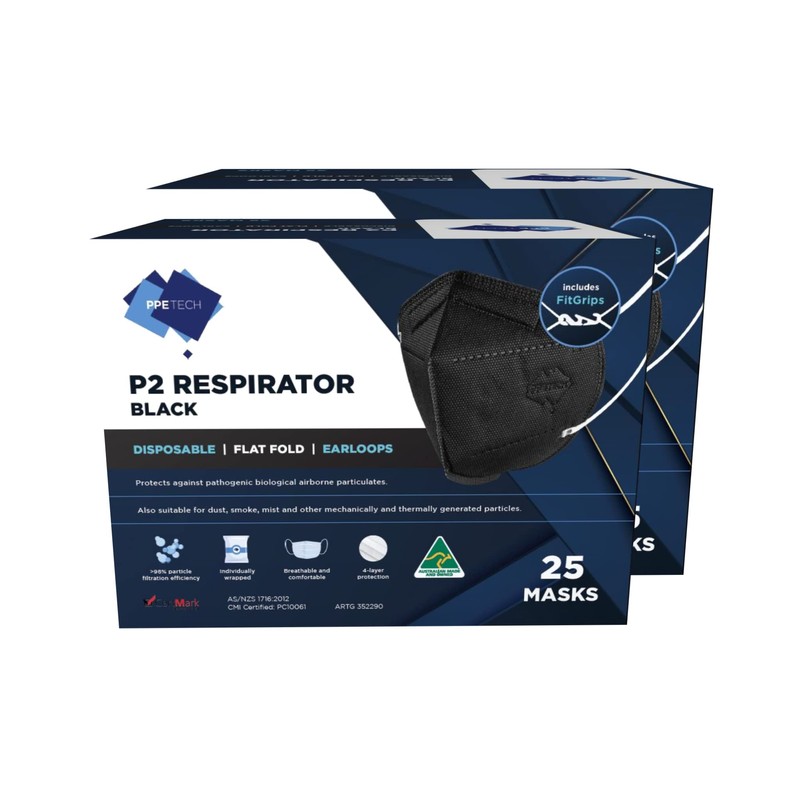 The most comfortable disposable face mask you'll ever wear! The PPE Tech P2 Respirator is 4-layer, Australian-made mask with greater than 98% particle filtration efficiency. Extra comfy and strong earloops ensure a snug fit.