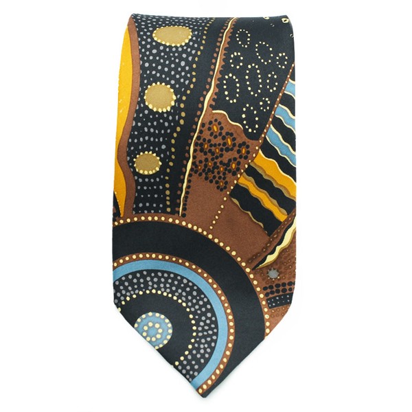 Add a splash of colour and sophistication to any outfit with our gorgeous Aboriginal ties. Made right here in Australia and featuring authentic Aboriginal art, these Outstations ties are a stunning Australian gifts that are lightweight and easy to send anywhere in the world. Each sale generates a royalty that is paid directly to the artist which helps support Aboriginal artists and communities across Australia. So whether you’re looking for a new tie to add to your own wardrobe or a gift for friends or family, these stunning ties are a must have!