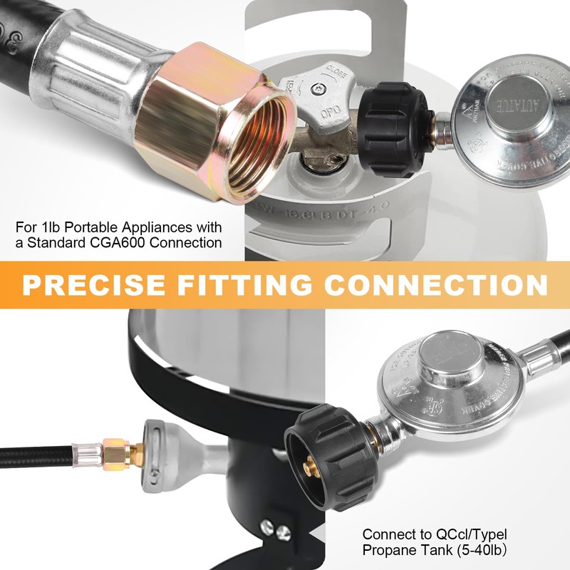 - Sturdy 5/16" high-Pressure Rubber Hose: Made with flexible high-pressure rubber designed for propane gas flow—resists cracking extreme temperatures and corrosion Ensures safe leak-proof connections for long-term reliability