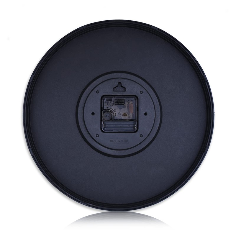 - Diseño simple: Marco de lástico negro y números arábigos negros con fondo blanco. La base de este reloj de 12" está hecha de plástico resistente y es muy ligera, este arte funcional es a la vez bonito y práctico.