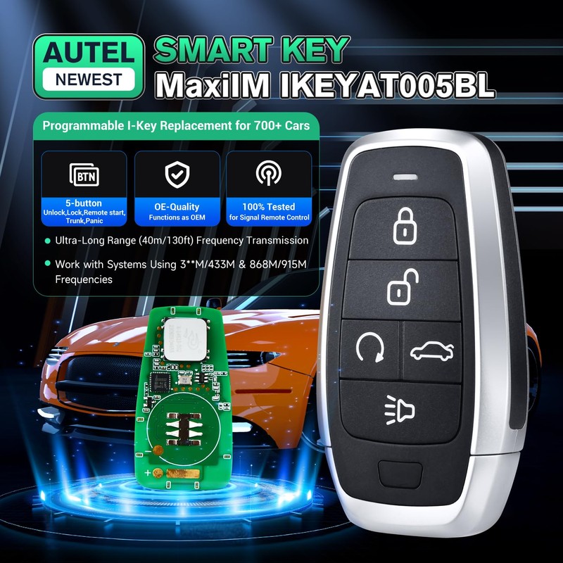 Autel MaxiIM IKEYAT005BL Universal Programmable Remote Control 5 Buttons OBD Learning for 700+ Cars Dual Band Remote Control with 130 Feet Works with KM100