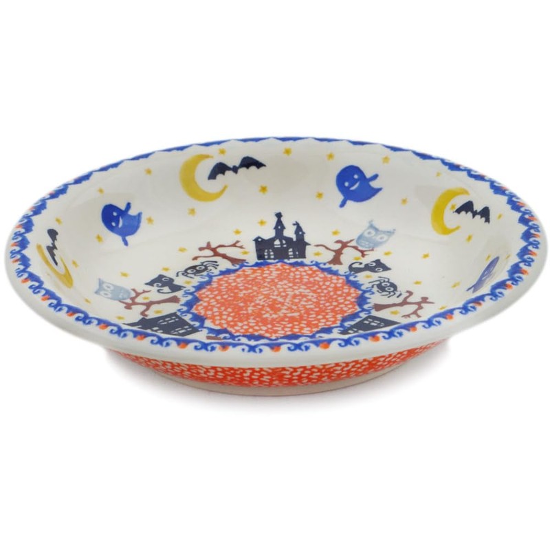 Authentic Polish Pottery Pasta Bowl 9-inch in Halloween Spooky Vibe Design Handmade in Bolesławiec Poland by Ceramika Bona + Certificate of Authenticity