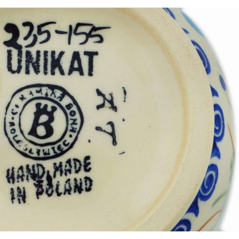 For centuries, the tradition and originality of Bolesławiec craftsmanship have shone through each piece of Polish pottery. Known for its blend of functionality and beauty, it resists scratches and chips, distributes heat evenly, and features vibrant, never-fade patterns for endless mix-and-match potential. Each lead and cadmium-free piece is crafted for durability and safety, adding style to your kitchen. Meticulously decorated by hand, especially the unique UNIKAT patterns, it bears the artist's signature, celebrating the heritage of Polish artistry.
