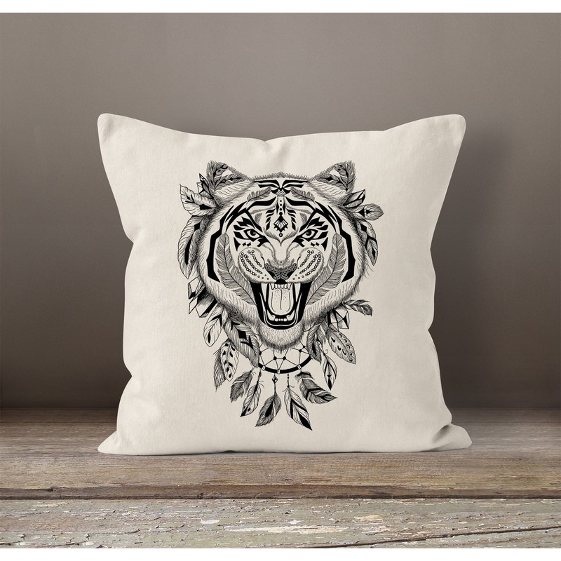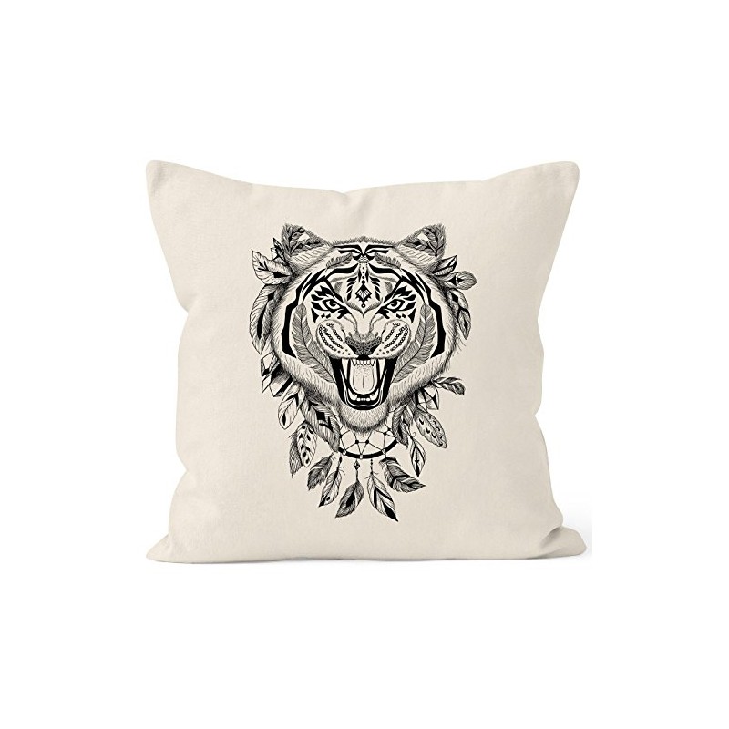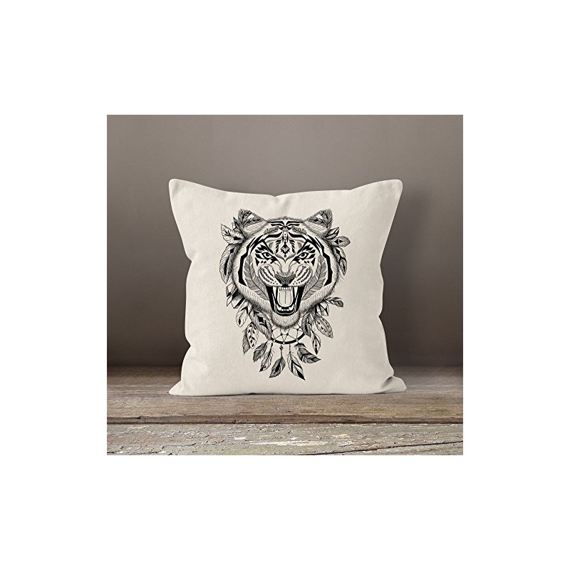 Autiga Cushion Cover Tiger Boho Zentangle Bohamian Atzec Feathers Dream Catcher Cushion Cover Decorative Cushion Square Cotton Natural One Size