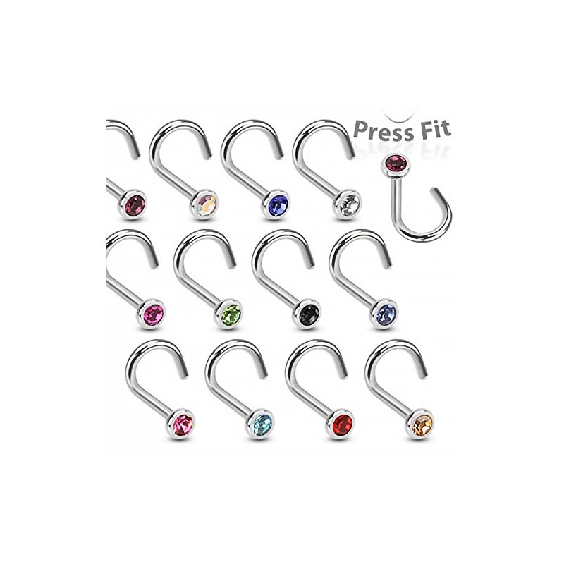 Autiga Nose Piercing Stud Nose Stud Nose Piercing Curved Zirconia Crystal, Stainless Steel, Crystal